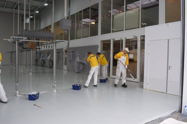 Maar net als voor de particuliere opdrachtgever, kunnen we voor bedrijven het onderhoud aan zowel binnen- als buitenzijde verzorgen. Noom werkt veel samen met diverse interieurpartners die heel graag meedenken over de juiste uitstraling passend bij uw bedrijf. Van trappenhuis tot werkplaats, van entree tot kantoor. Eén van onze specialiteiten is het aanbrengen van speciale vloercoatings voor in uw showroom of werkplaats.